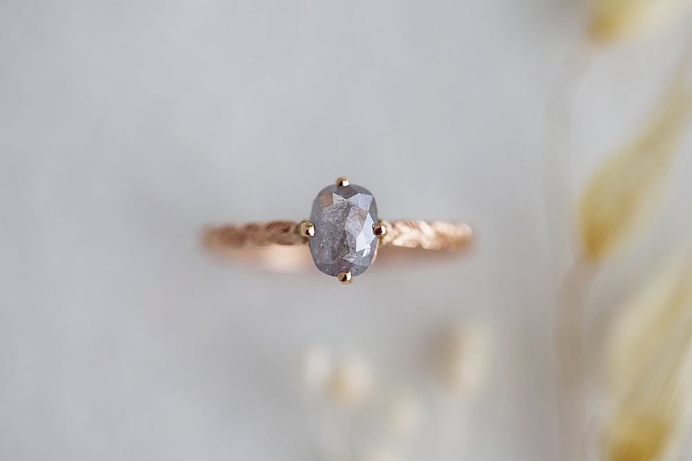 18ct rose gold, grey oval rose-cut diamond ring (IOW121)