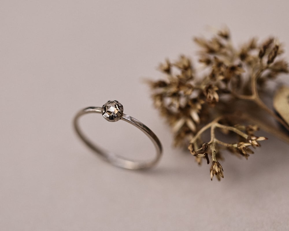 18ct White gold, 3.0mm Rose-cut Champagne diamond ring (LON267)