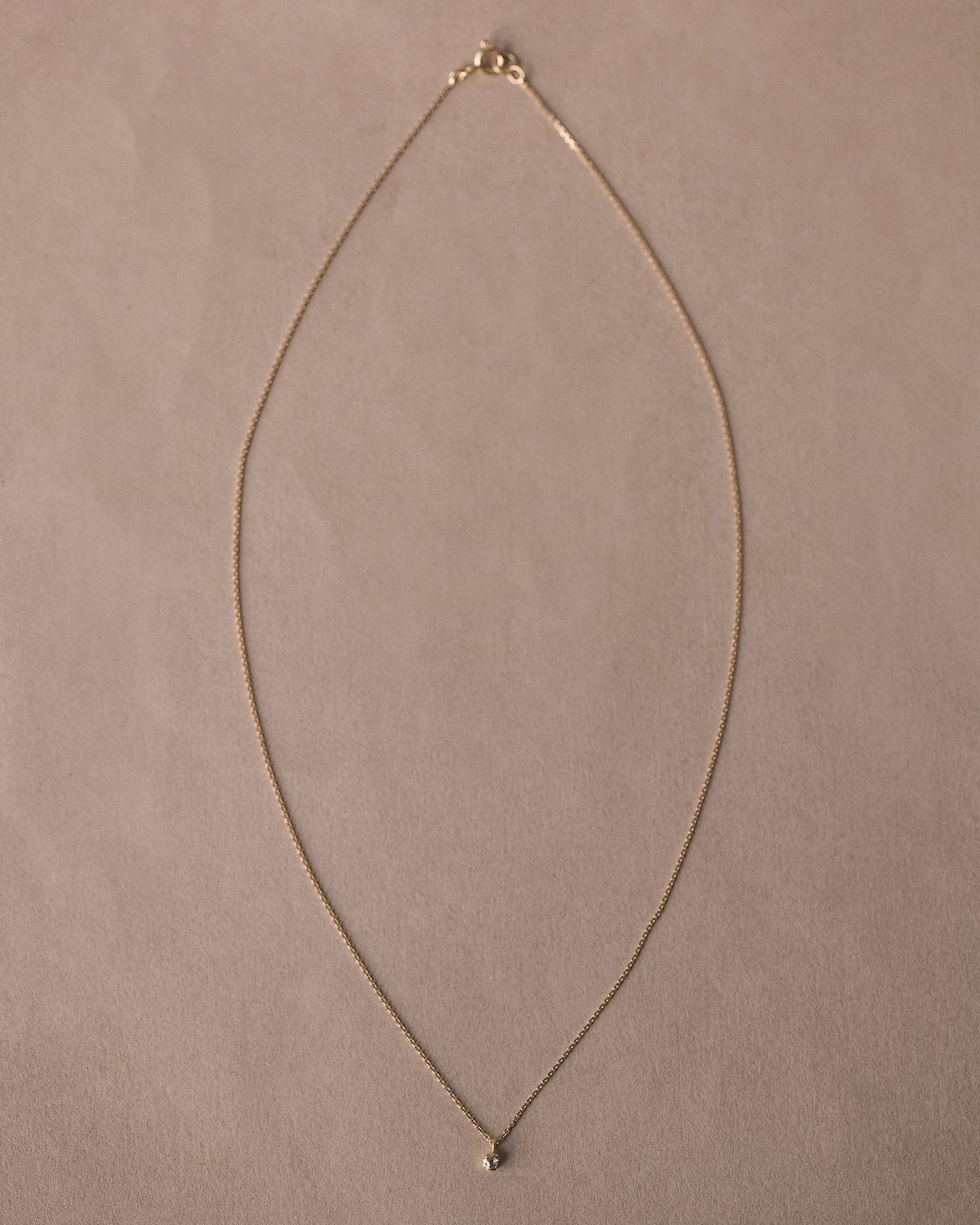 A simple and beautiful 2.0mm rose cut white diamond, set in 18ct gold with a fine sparkly chain.