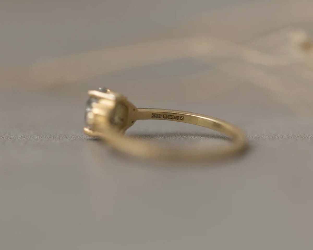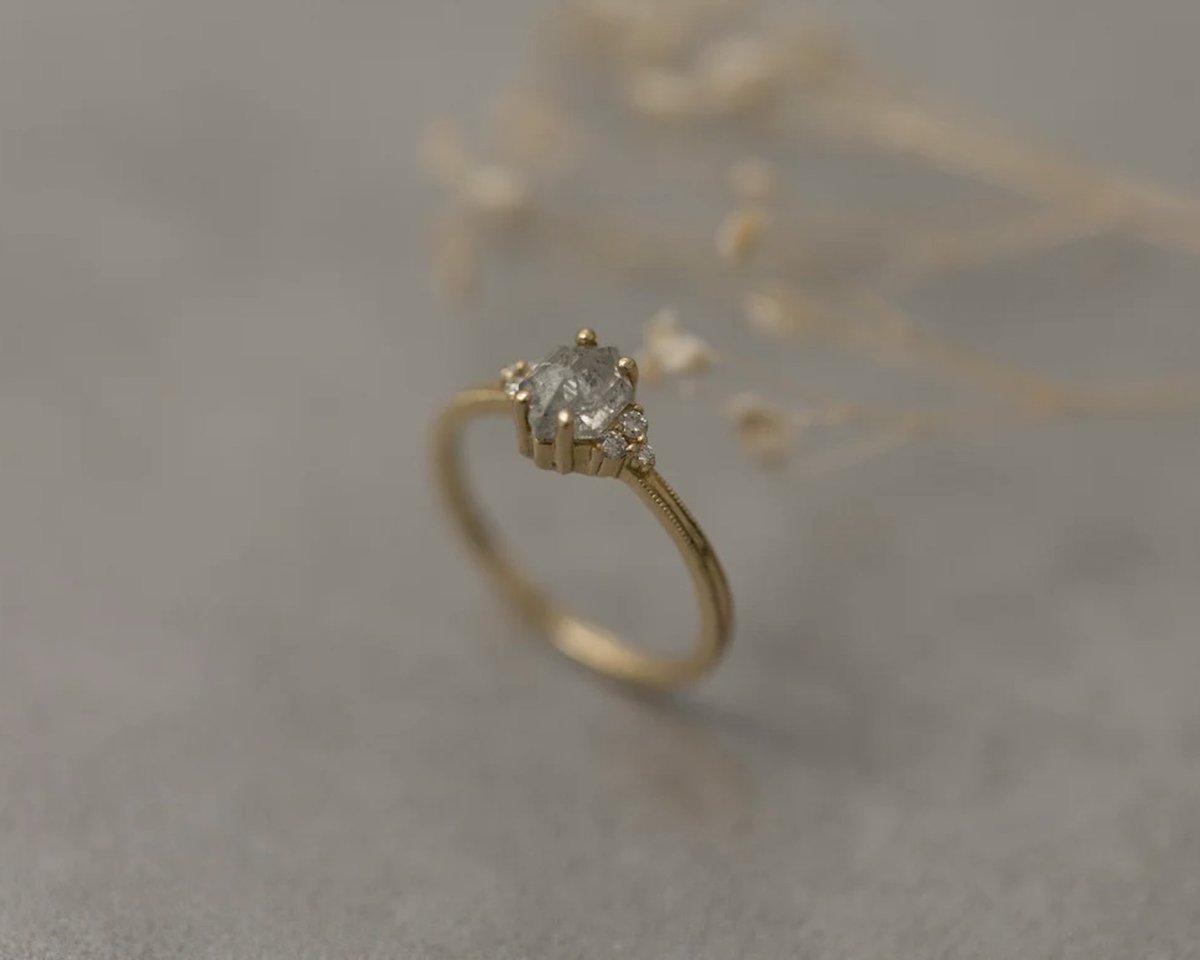 6.79 x 4.79mm (0.56ct) Hexagonal Rose-cut 'Ice’ diamond, 18ct gold ring