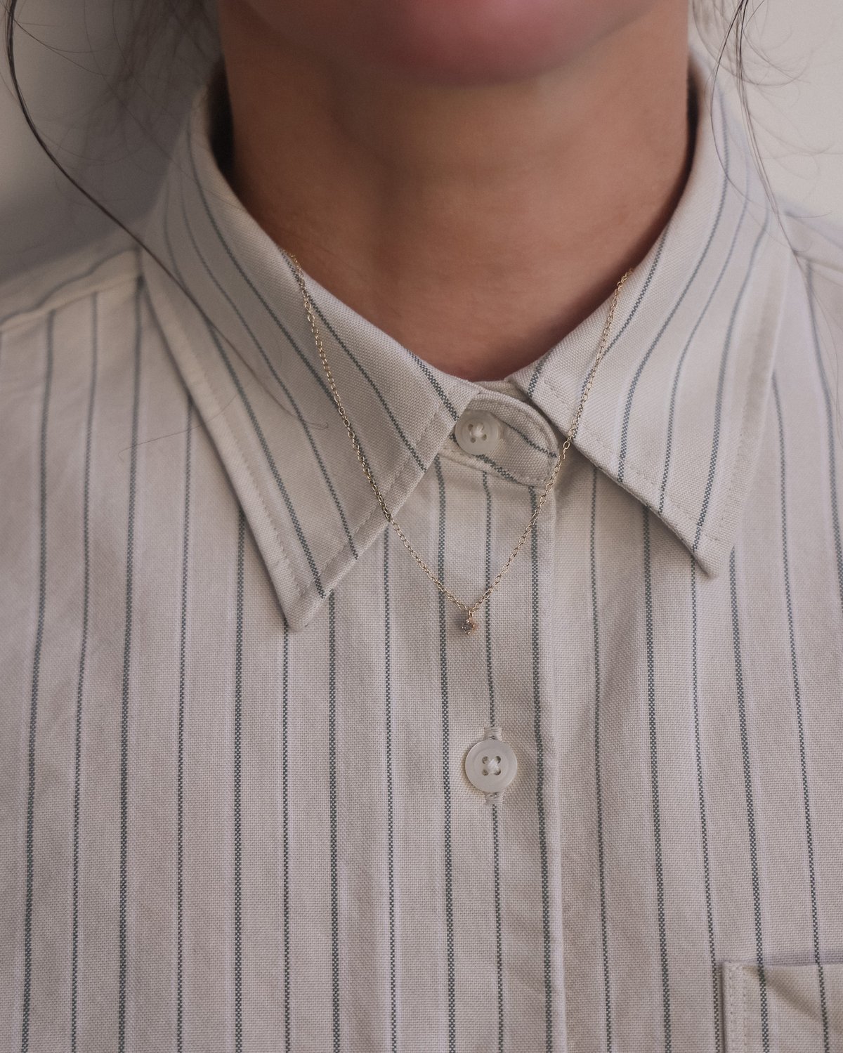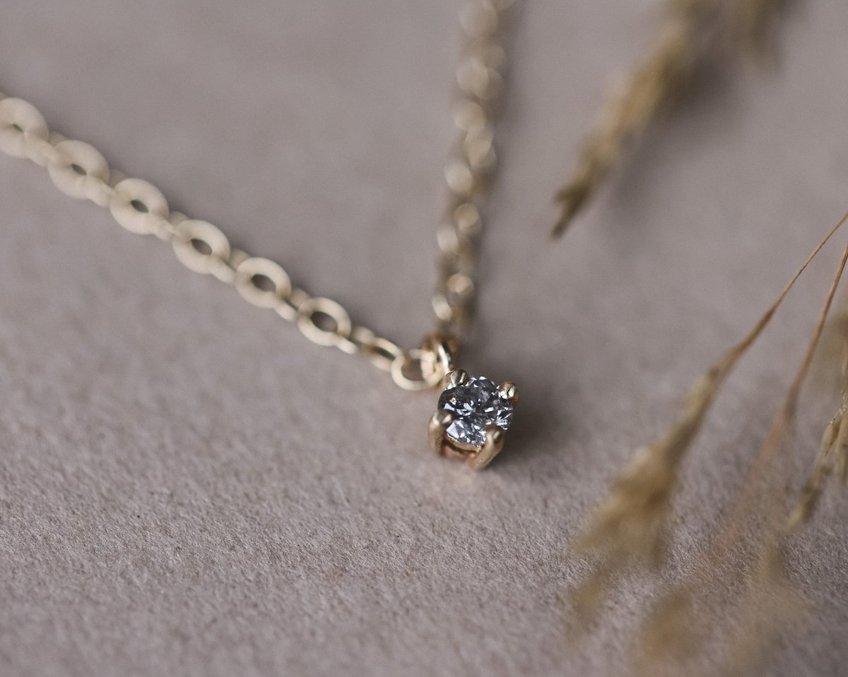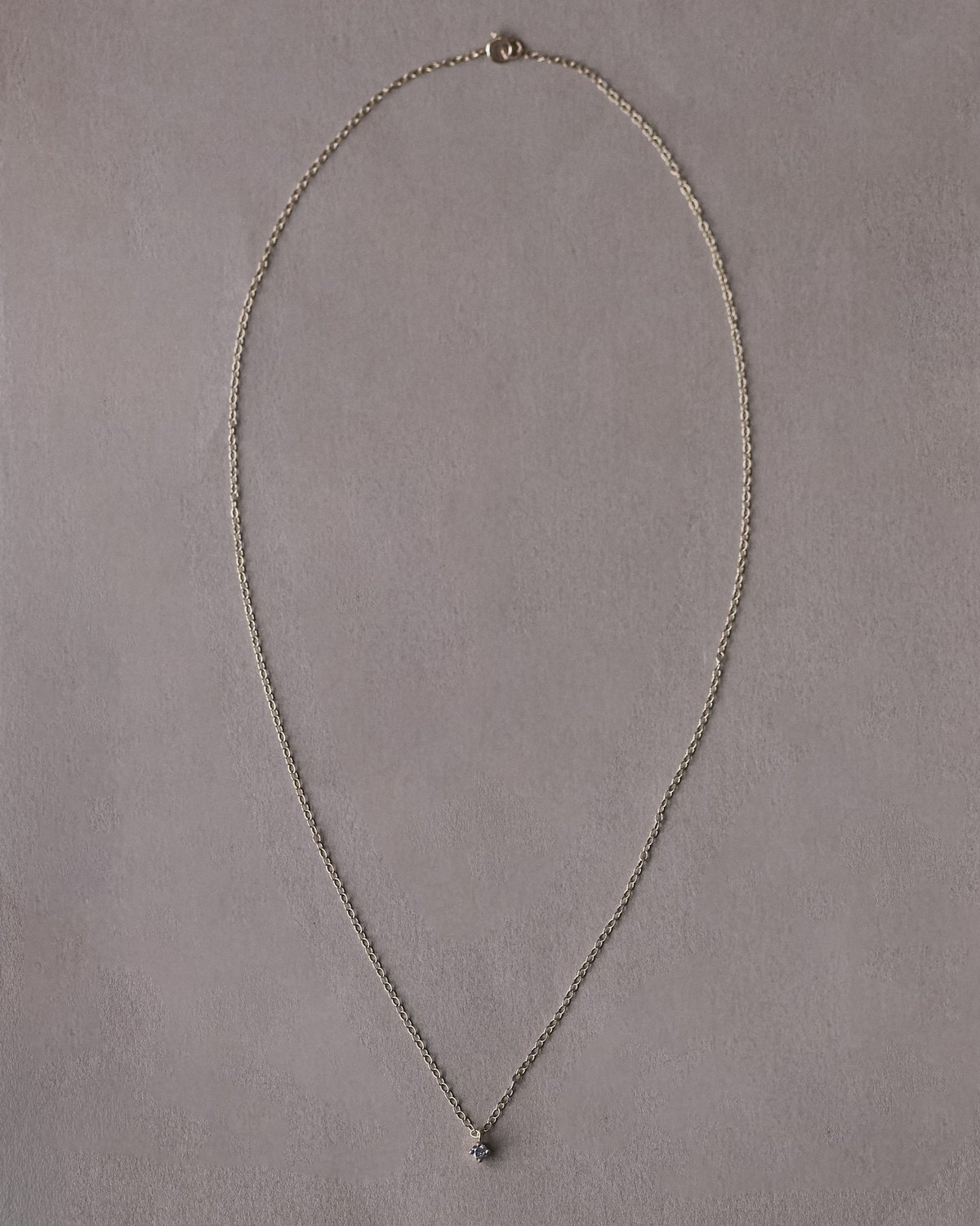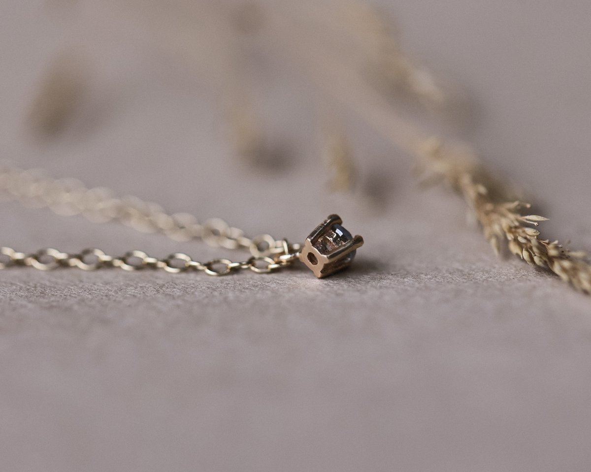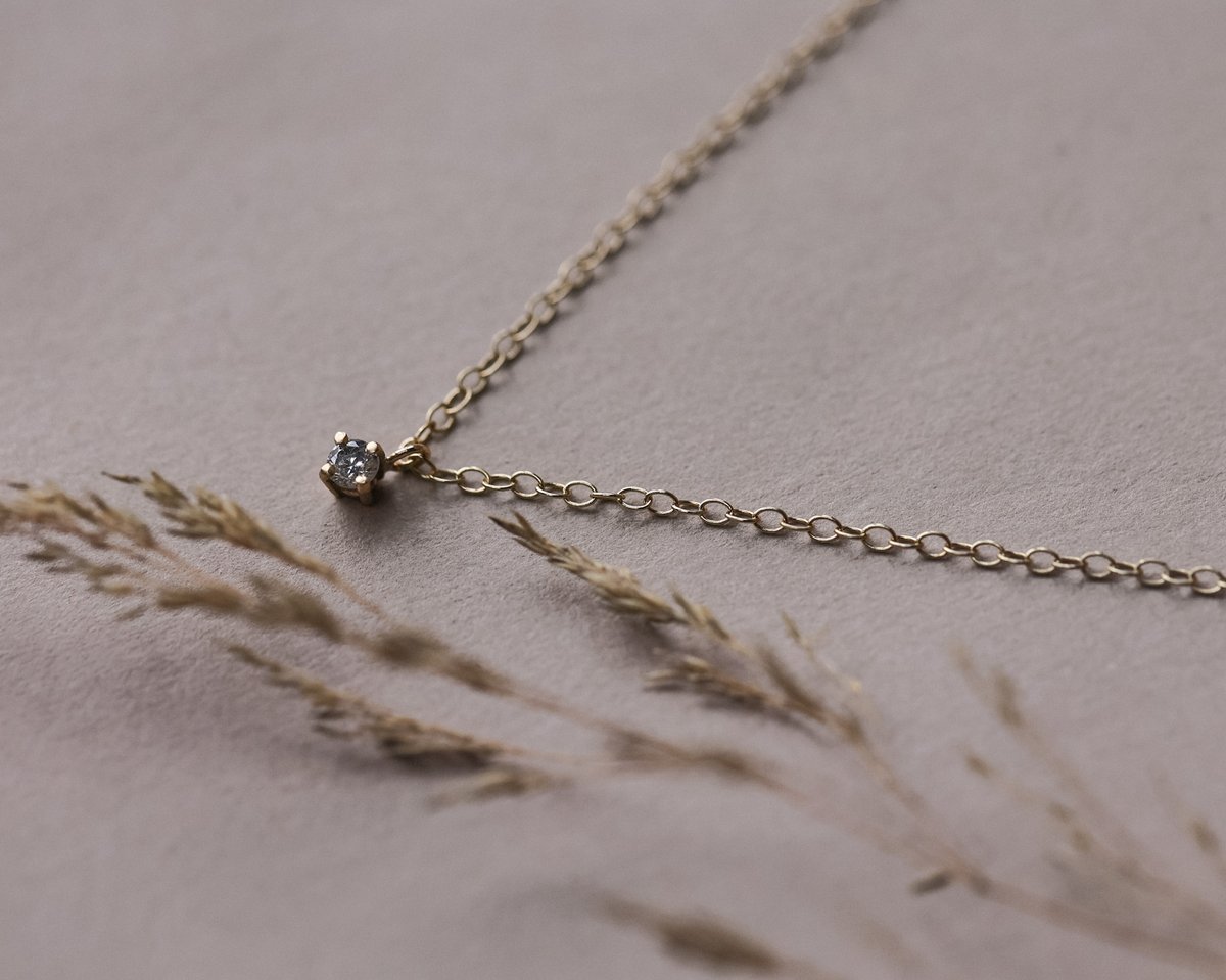 2.8mm Grey Salt & Pepper diamond in a claw setting, with 9ct gold fine trace chain.