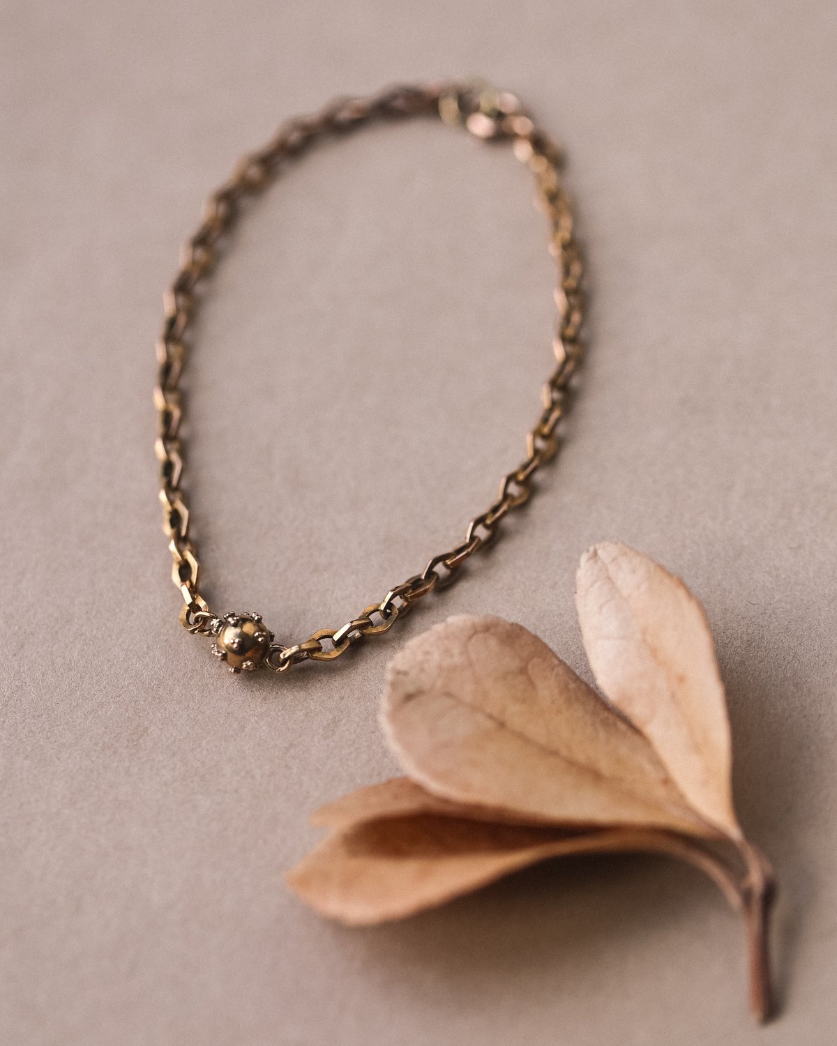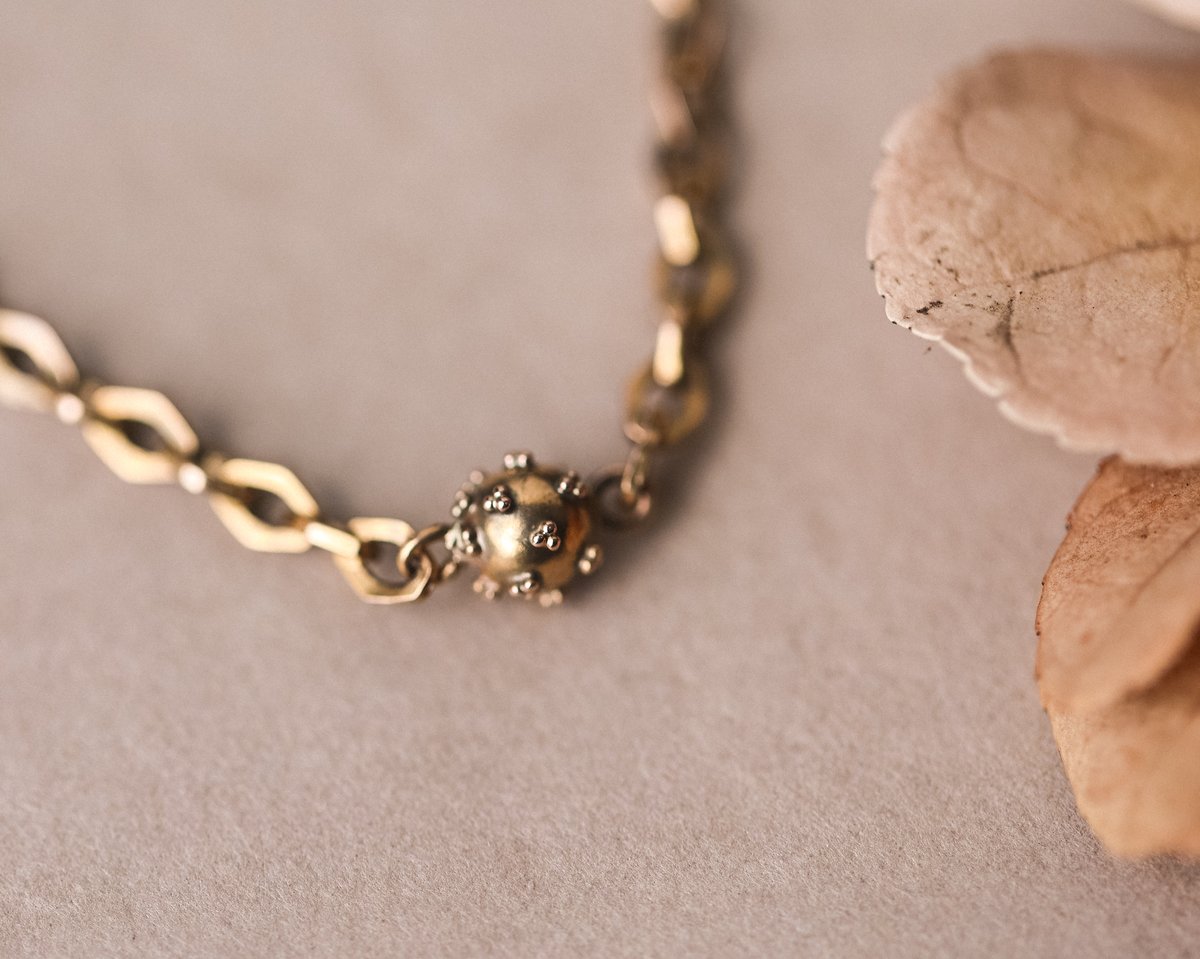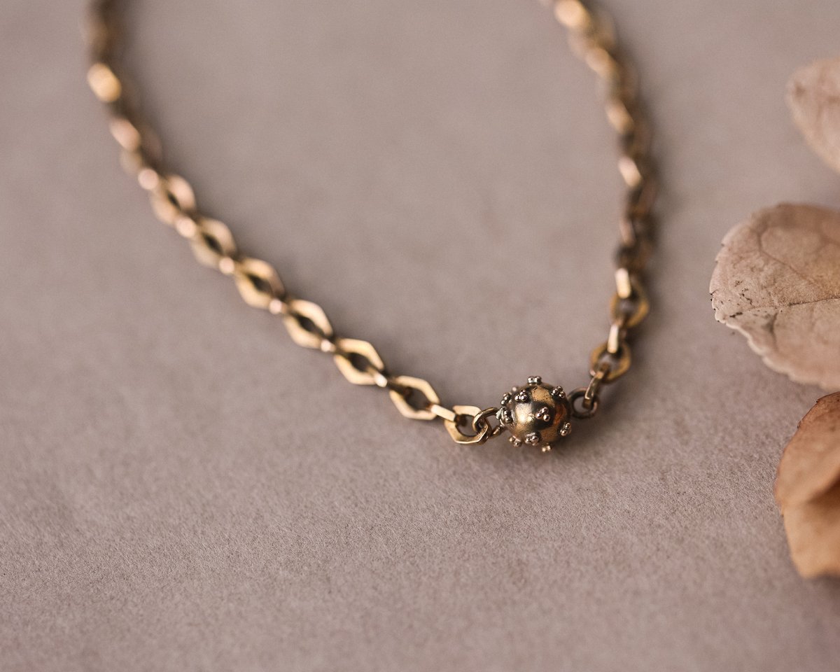 This is a one-off piece, made from a beautiful French antique chain found at a market in Paris, making this a truly limited and special item.