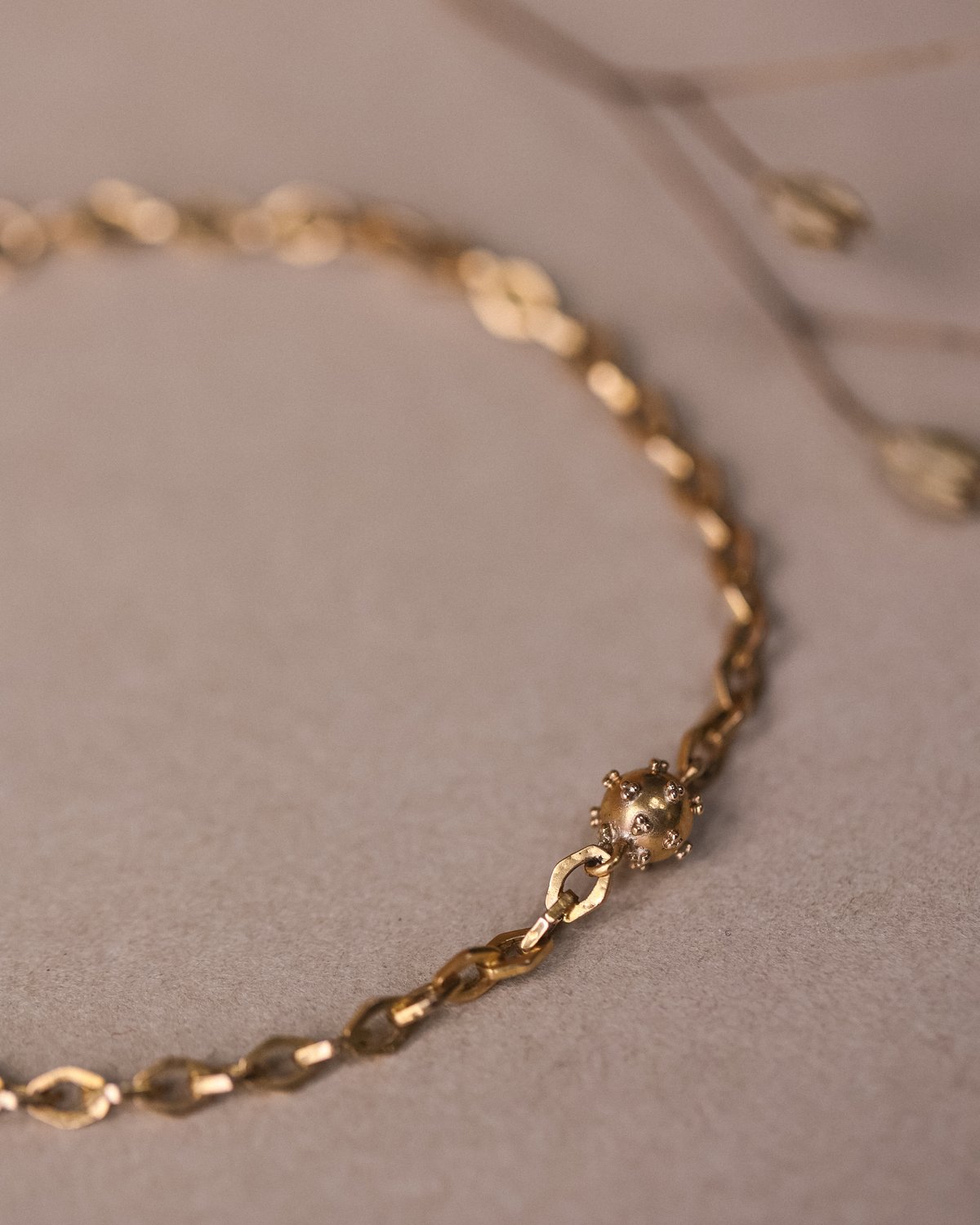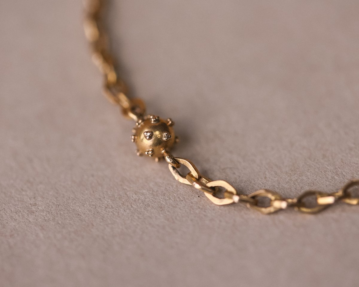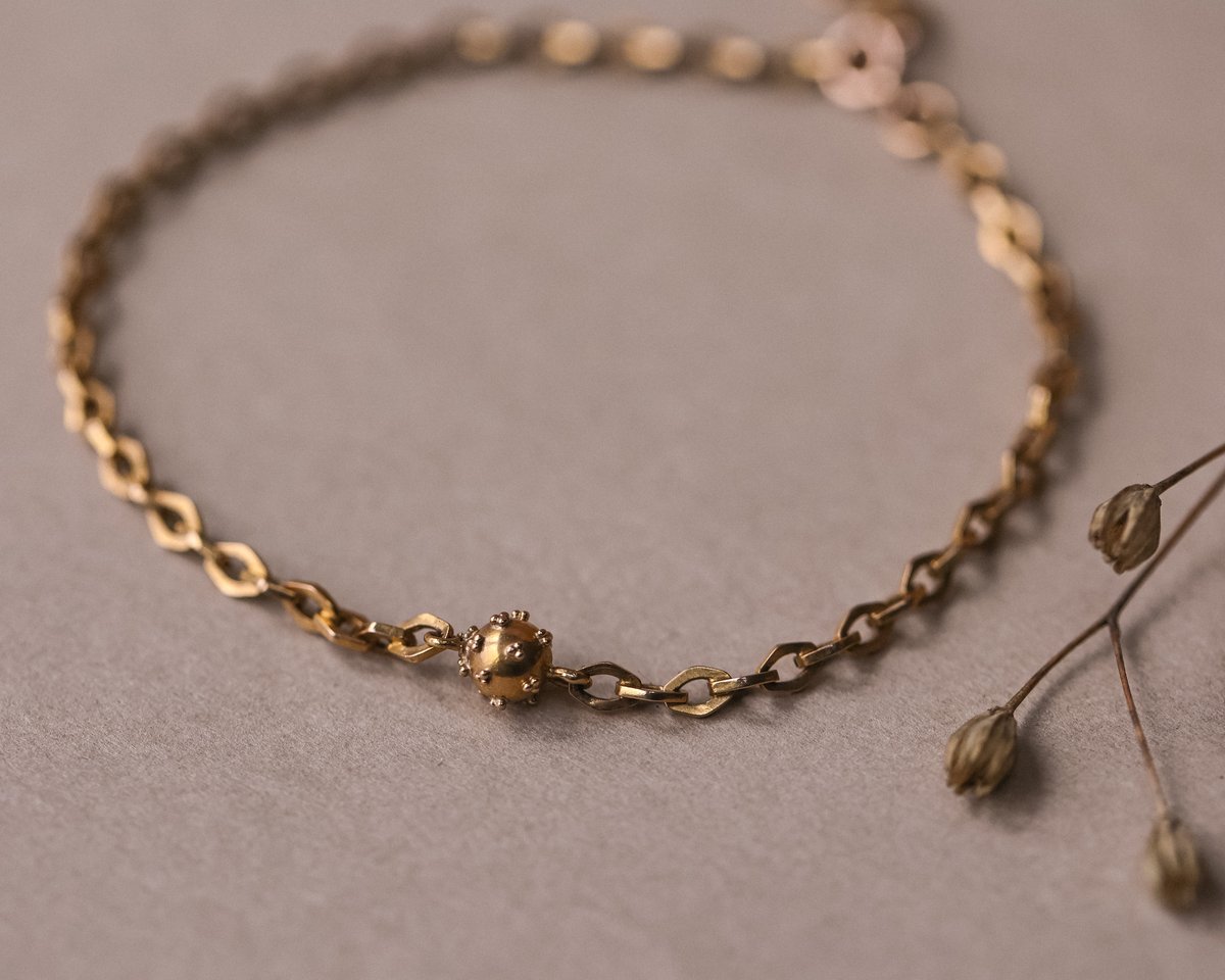 This is a one-off piece, made from a beautiful French antique chain found at a market in Paris, making this a truly limited and special item.