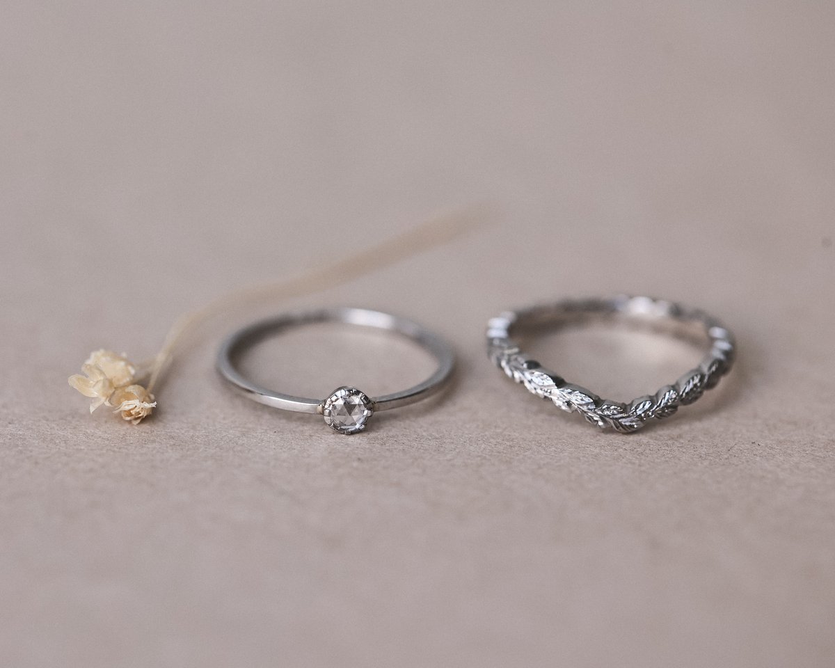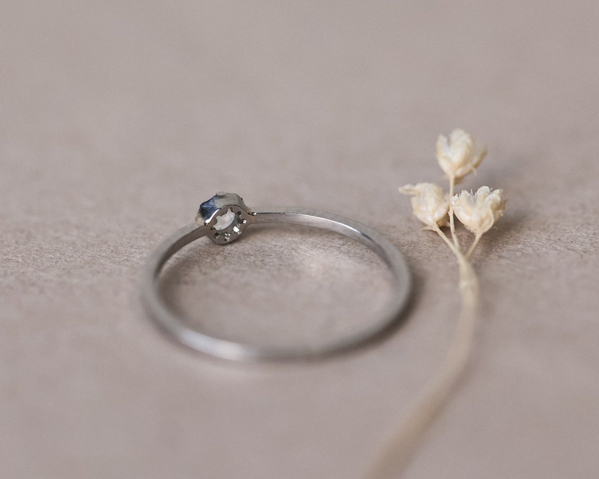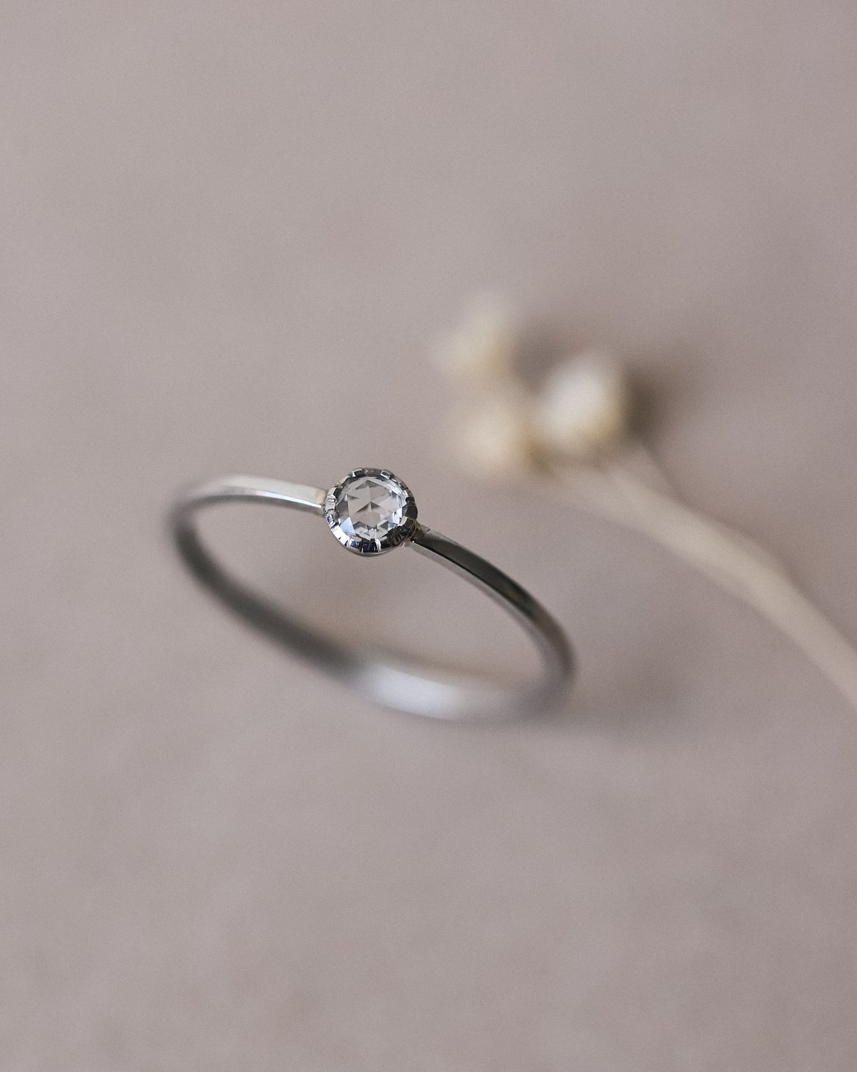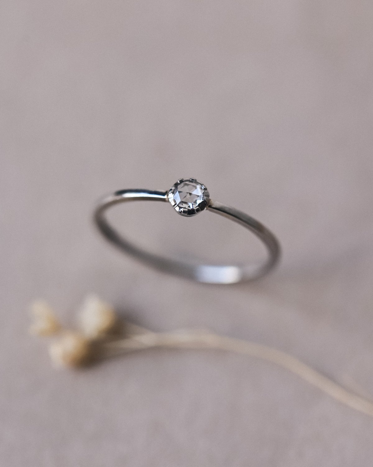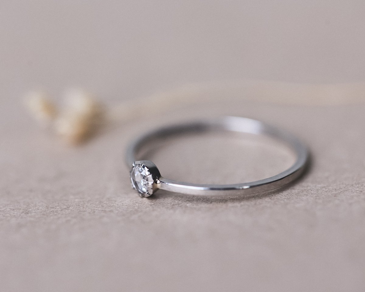 3mm White Rose-Cut Diamond, Platinum ring.